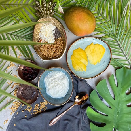 Serviert werden unsere Bowls wahlweise mit griechischem oder Coconut Joghurt.